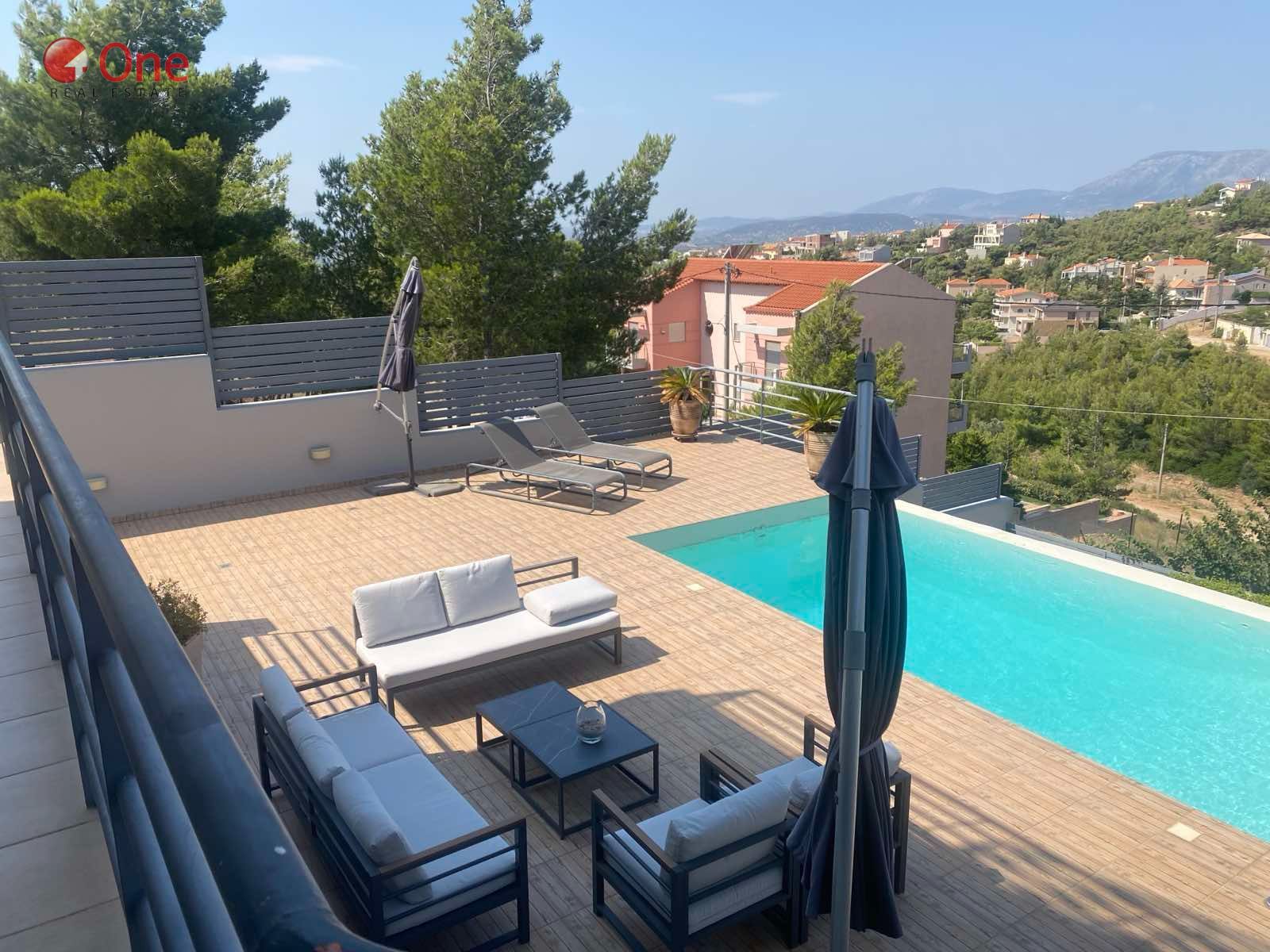 Κατασκευασμένο το 2010, αυτό το ακίνητο προσφέρει επιπλέον ασφάλεια με θωρακισμένη πόρτα, θυροτηλεόραση, συναγερμό, και τριφασικό ρεύμα. Χαλαρώστε στον κήπο ή απολαύστε στιγμές διασκέδασης στην πισίνα. Ιδανικό για οικογένειες, καθώς επιτρέπονται τα κατοικίδια. Απολαύστε την υπέροχη θέα και ζήστε σε ένα σπίτι που συνδυάζει στυλ και λειτουργικότητα.