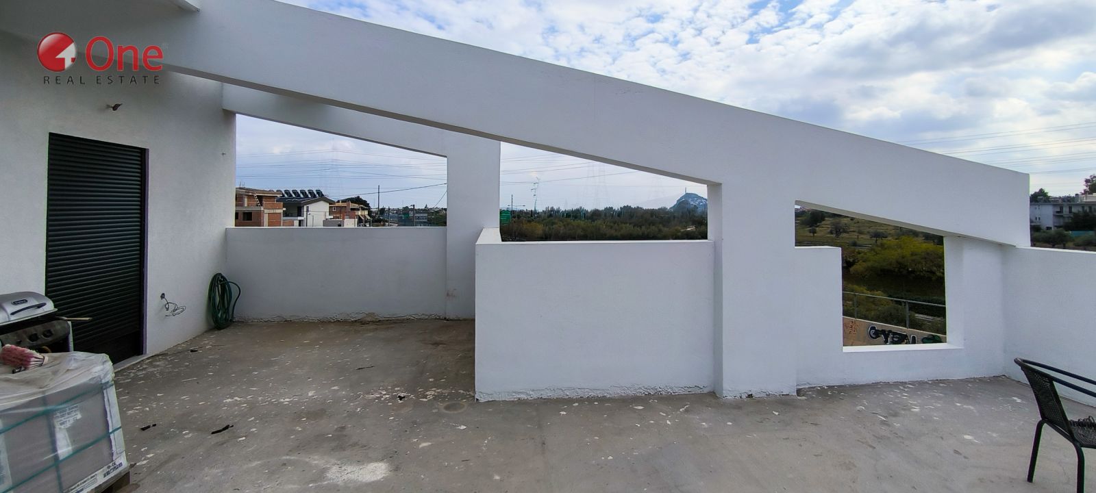 Πωλείται σύγχρονη διώροφη μονοκατοικία–μεζονέτα συνολικού εμβαδού 220 τ.μ., σε γωνιακό οικόπεδο 310 τ.μ., με εξαιρετικό σχεδιασμό, ποιοτική κατασκευή και υψηλή ενεργειακή απόδοση.Αναπτύσσεται σε ισόγειο, 1ο όροφο, σοφίτα και υπόγειο:🏠 Ισόγειο (110 τ.μ.): ενιαίος χώρος σαλονιού–κουζίνας με εντοιχισμένες συσκευές, 🛏️ 2 υπνοδωμάτια, 🛁 1 μπάνιο, 🚻 1 WC🧭 1ος όροφος: 2 επιπλέον υπνοδωμάτια, 🛋️ καθιστικό, 🧺 αποθηκευτικός χώρος, 🛁 μπάνιο, 🌄 βεράντα 50 τ.μ. με θέα στο βουνό🎯 Σοφίτα: στούντιο 40 τ.μ. + πατάρι 15 τ.μ. – ιδανικό για γραφείο, ξενώνα ή χώρο ψυχαγωγίας🚗 Υπόγειο (110 τ.μ.): 2 θέσεις στάθμευσης & αποθήκη