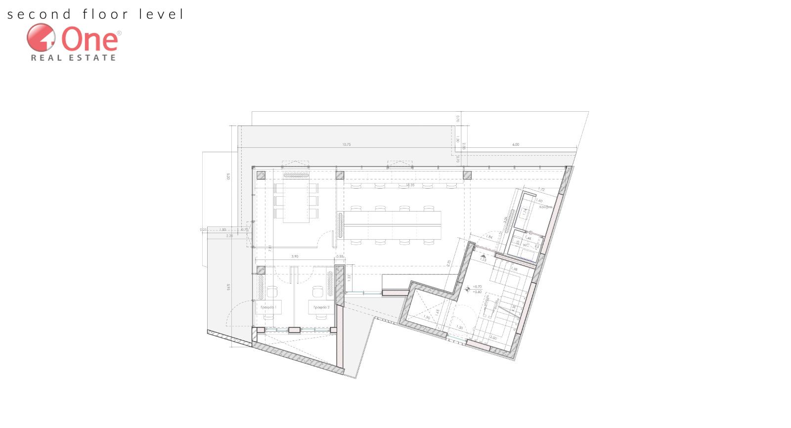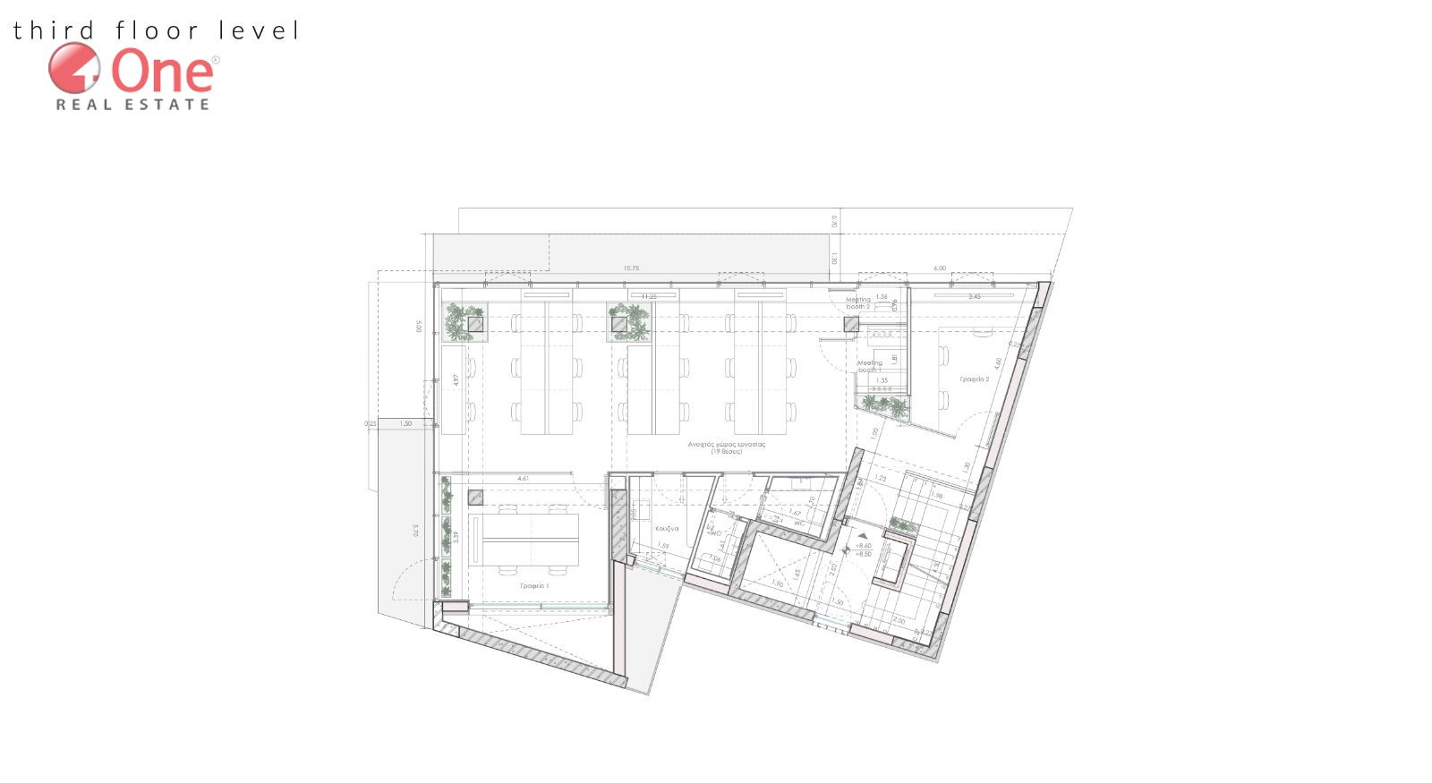 Πρόκειται για έναν πολυτελή γραφειακό χώρο που αναπτύσσεται σε 3 ορόφους, ξεκινώντας από τον 2ο με 100τ.μ, τον 3ο με 115τ.μ και τον 4ο με 125τ.μ, με master WC και επιπλέον εσωτερική σκάλα μεταξύ τρίτου και τέταρτου ορόφου. Διατίθεται επίσης 30 τ.μ ρεσεψιόν στο ισόγειο, καθώς και επιπλέον αποθηκευτικοί χώροι κατόπιν αιτήματος του μισθωτή. Αναμφίβολα, αυτό το ακίνητο με τη μίνιμαλ αισθητική αποτελεί σημείο αναφοράς για την περιοχή.