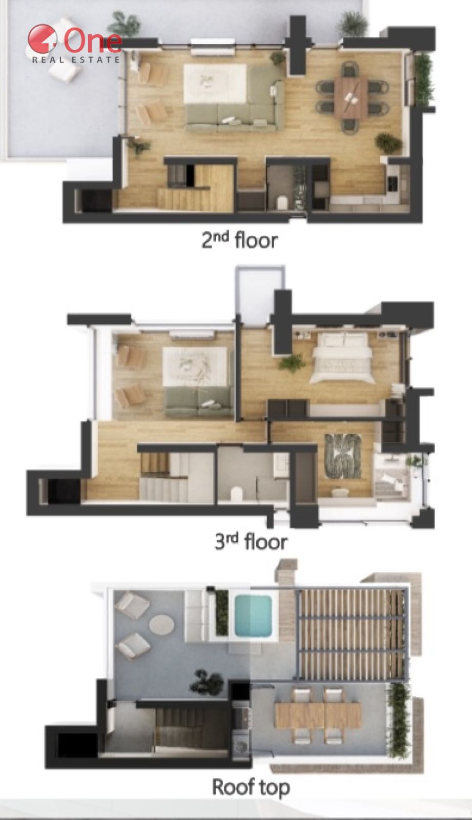 Η μεζονέτα διαθέτει δύο ευρύχωρα master υπνοδωμάτια, μοντέρνα κουζίνα με προηγμένες ηλεκτρικές συσκευές και κομψό σαλόνι. Απολαύστε άνεση όλο το χρόνο με αυτόνομη θέρμανση fan coil και πλήρως επιπλωμένη κουζίνα. Το ακίνητο είναι ρετιρέ τριών επιπέδων και περιλαμβάνει πισίνα και jacuzzi.