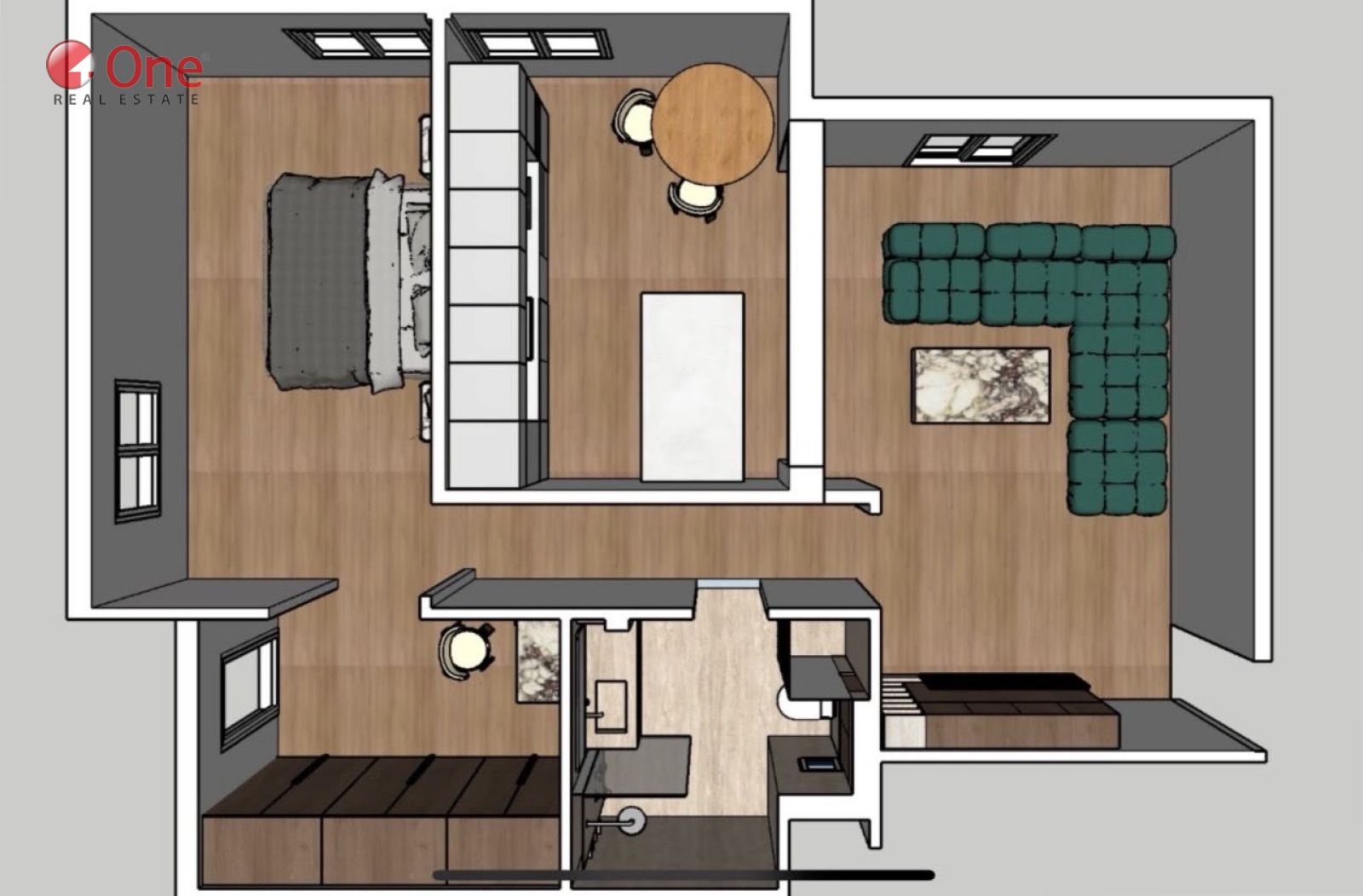 Το διαμέρισμα διαθέτει 1 υπνοδωμάτιο με walking closet, κουζίνα με ποιοτικές συσκευές BOSCH, σαλόνι, μπάνιο και κουφώματα αλουμινίου Alumil με σίτες και ηλεκτρικά ρολά. Η ασφάλεια εξασφαλίζεται μέσω θωρακισμένης πόρτας, προεγκατάστασης συναγερμού και θυροτηλεόρασης.