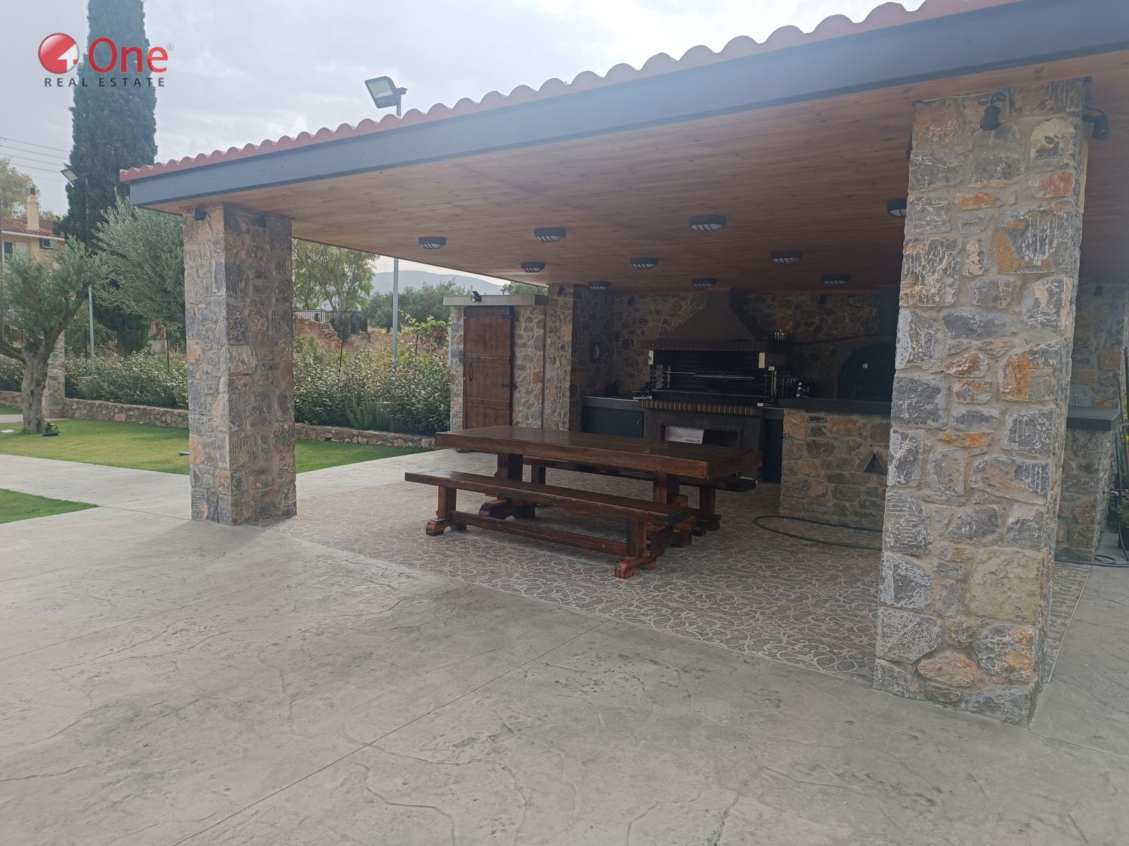 Πωλείται πολυτελής βίλα 230 τ.μ. στην περιοχή Ζάχουλη Μέγαρα Αλεποχώρι, σε έκταση οικοπέδου 5.000 τ.μ. Στο ισόγειο, υπάρχει ένα μεγάλο φωτεινό καθιστικό με τζάκι και τραπεζαρία, καθώς και τουαλέτα επισκεπτών. Η πλήρως εξοπλισμένη κουζίνα διαθέτει όλες τις απαραίτητες συσκευές.
