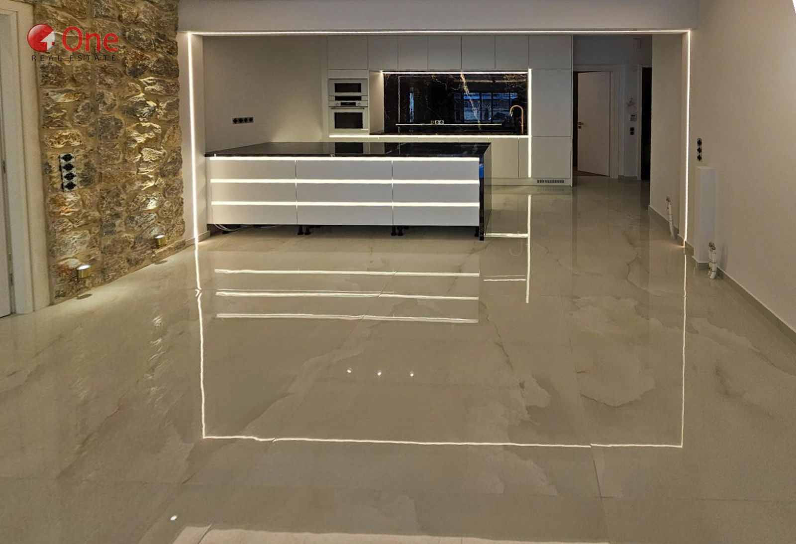 🛋 Μεγάλοι και φωτεινοί χώροι υποδοχής με δάπεδα από γρανίτη, ενώ τα 3 υπνοδωμάτια διαθέτουν παρκέ φυσικής δρυός.🍽 Σύγχρονη κουζίνα με ολοκαίνουριες εντοιχιζόμενες ηλεκτρικές συσκευές (φούρνος, μικροκυμάτων, πλυντήριο ρούχων, πλυντήριο πιάτων, ψυγείο, κεραμικές εστίες), οι οποίες παρέχονται με το ακίνητο.