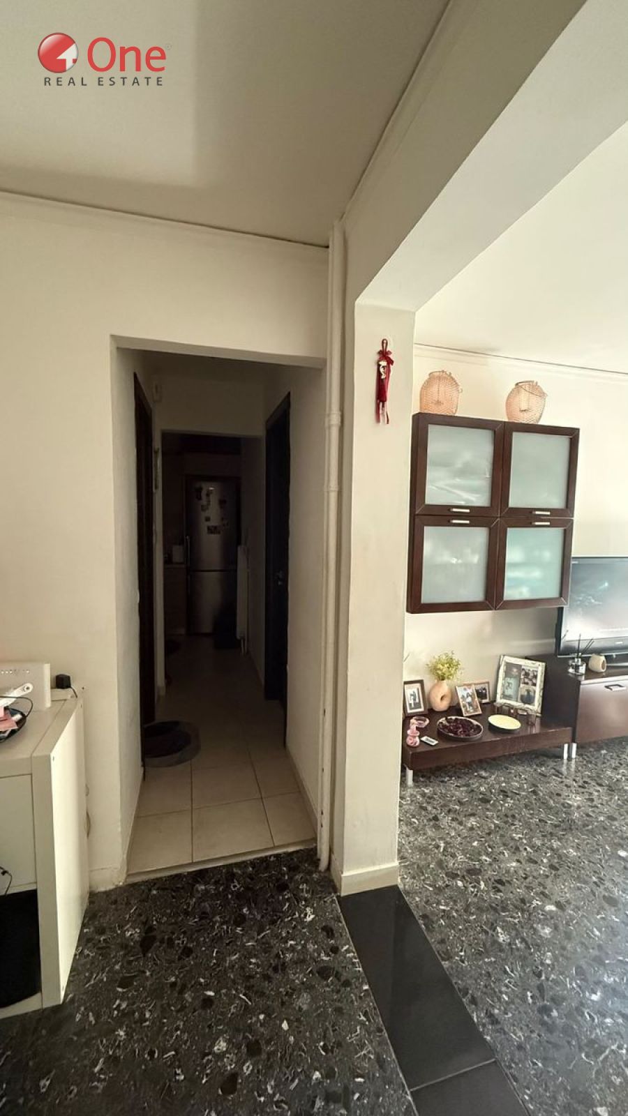 Η διαρρύθμιση περιλαμβάνει 1 ευρύχωρο υπνοδωμάτιο, ξεχωριστή κουζίνα, σαλόνι που ενώνεται με το χολ για δημιουργία άνετου και φωτεινού καθιστικού χώρου, και μπάνιο. Το μικρό μπαλκόνι προσφέρει θέα σε πλατεία και εκκλησία, προσδίδοντας ανοιχτότητα και φυσικό φως.