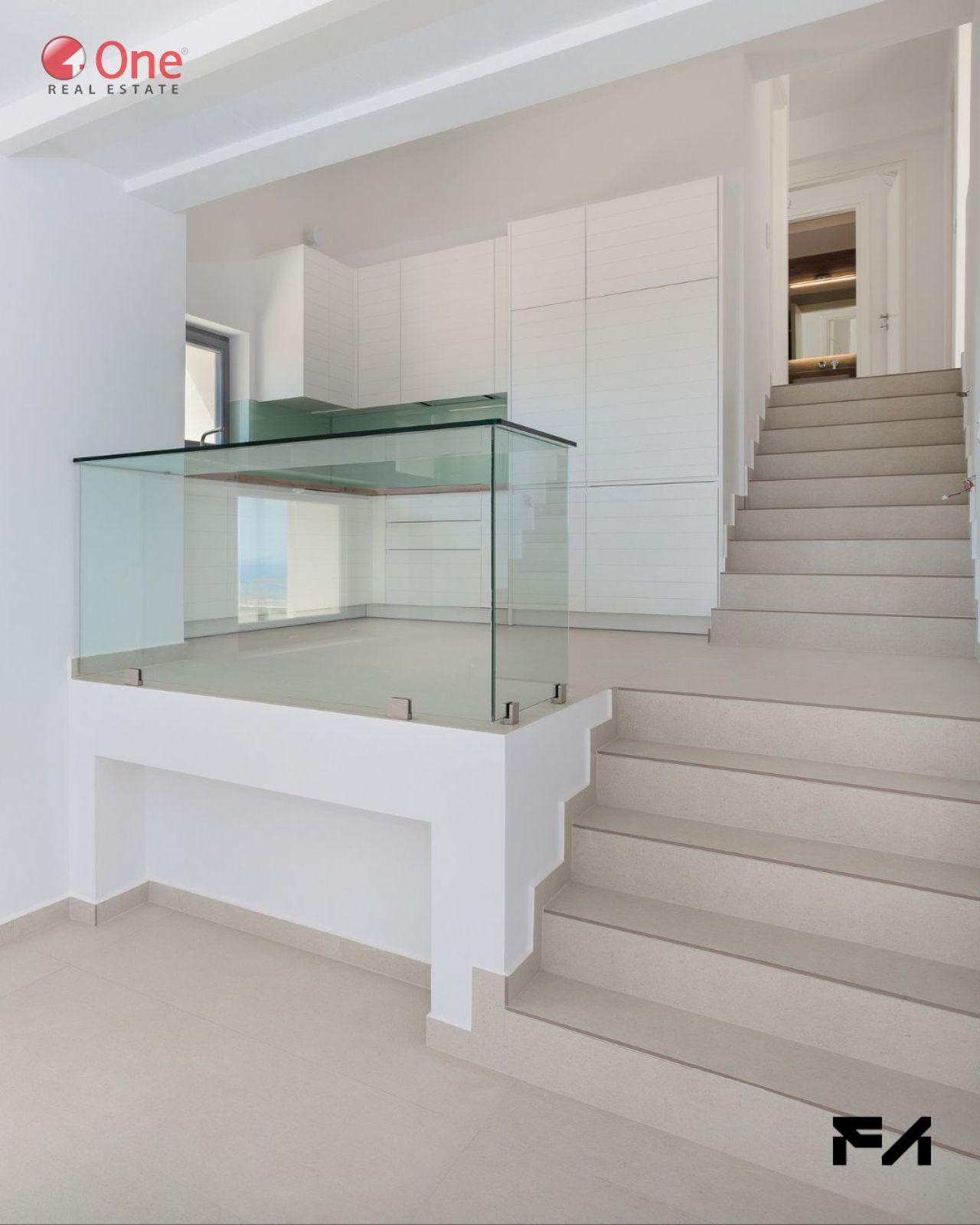 Το επάνω επίπεδο, επιφάνειας 138 τ.μ., διαθέτει ένα ευρύχωρο και φιλόξενο σαλόνι με πανοραμική θέα στη θάλασσα, προσφέροντας μοναδική αίσθηση ηρεμίας και ιδιωτικότητας. Η φωτεινή κουζίνα, ελαφρώς υπερυψωμένη από τον κύριο χώρο καθιστικού, είναι πλήρως εξοπλισμένη και διαθέτει μεγάλο παράθυρο. Δύο άνετα υπνοδωμάτια, εκ των οποίων το ένα είναι master με ιδιωτικό μπάνιο, καθώς και δύο μπάνια με θέα στη θάλασσα, συμπληρώνουν αυτό το επίπεδο.