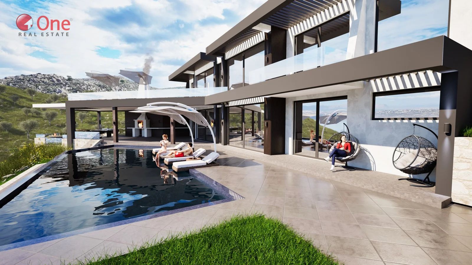 Οι εξωτερικοί χώροι είναι σχεδιασμένοι για χαλάρωση και ψυχαγωγία, με μεγάλη πισίνα υπερχείλισης, σκιερή τραπεζαρία και μπάρμπεκιου, δημιουργώντας μια τέλεια εμπειρία εσωτερικού-εξωτερικού χώρου.