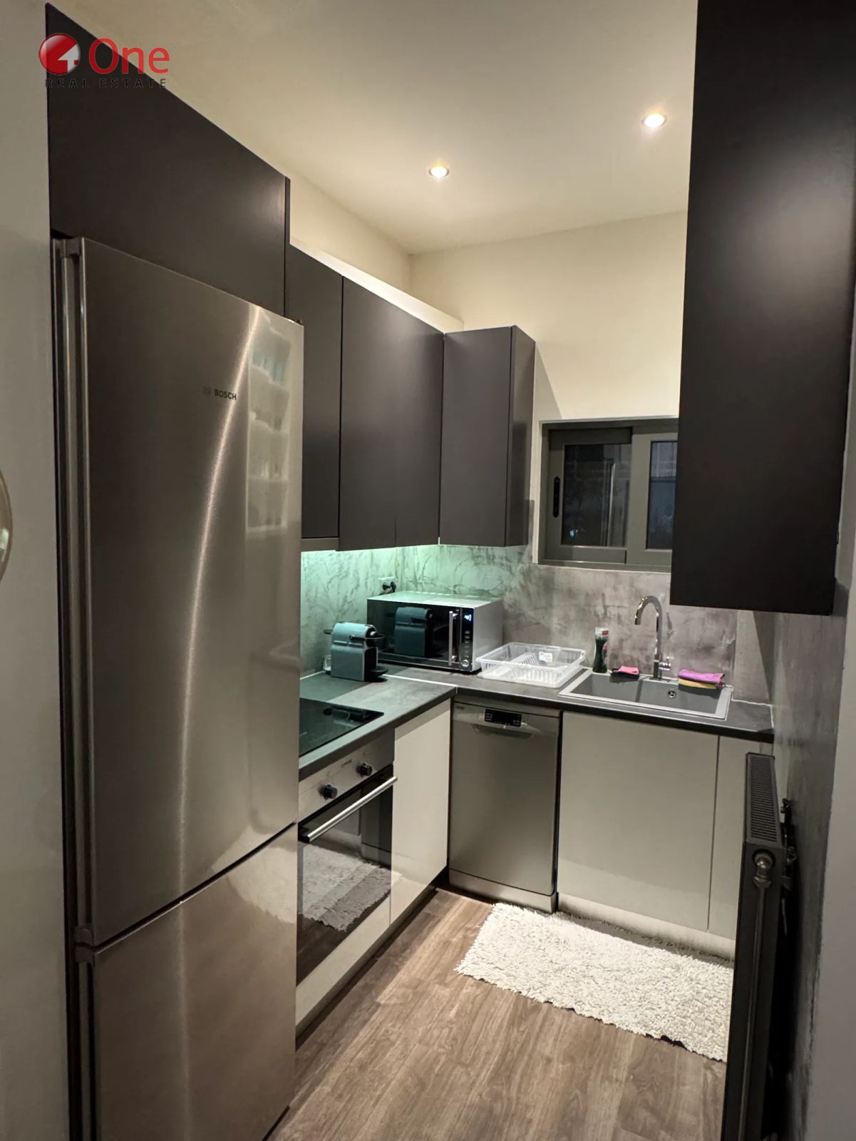 Athens - Northern Suburbs, Chalandri: For sale in, extremely quiet neighborhood of Chalandri, near Kifissias Avenue 47sqm. on the 1st floor. Completely renovated, with autonomous gas heating, electric ecosystem (fridge, kitchen/oven, dishwasher, washing machine, flat TV) designed with taste, and functionality. It consists of 1 bedroom, 1 kitchen, 1 living room and bathroom. The bedroom area has a prediction for easy separation with the seating area with an installation of glass. The small terrace sees in the lush garden. While furnished, built in 2000 and has aluminum windows, a special deal with neighboring parking lots offers a financial monthly parking lot. Security door, air conditioning, energy class b, awnings .. property code: #1524355