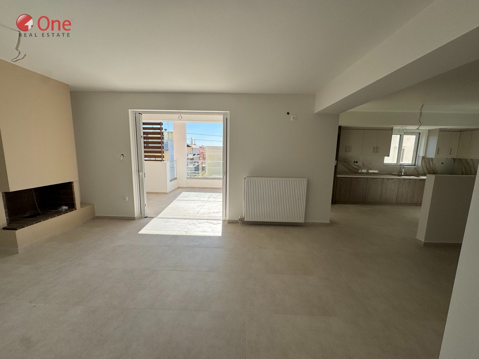 Athens - Western Suburbs, Acharnes Lathea: For sale modern and luxurious newly built airy Apartment 90 sq.m. facade on the 1st floor with independent heat pump heating. It consists of 2 bedrooms, one kitchen-living room with fireplace, bathroom and 1 WC. It was built in 2025, has a large veranda with a view and has a security door, 1 pilot parking space, basement storage of about 8 sqm, solar, energy class A+, screens Property Code: #1530745