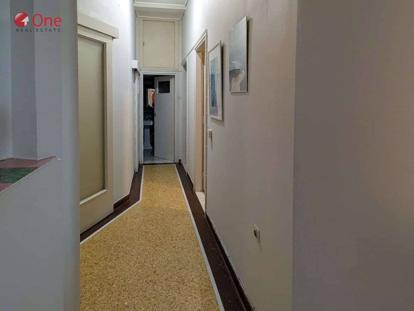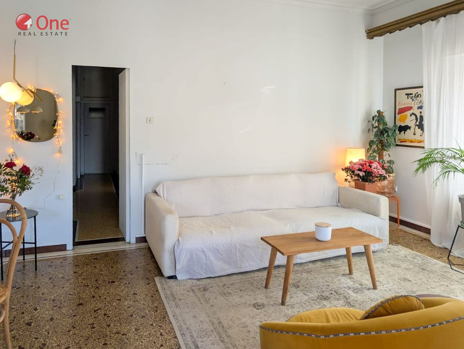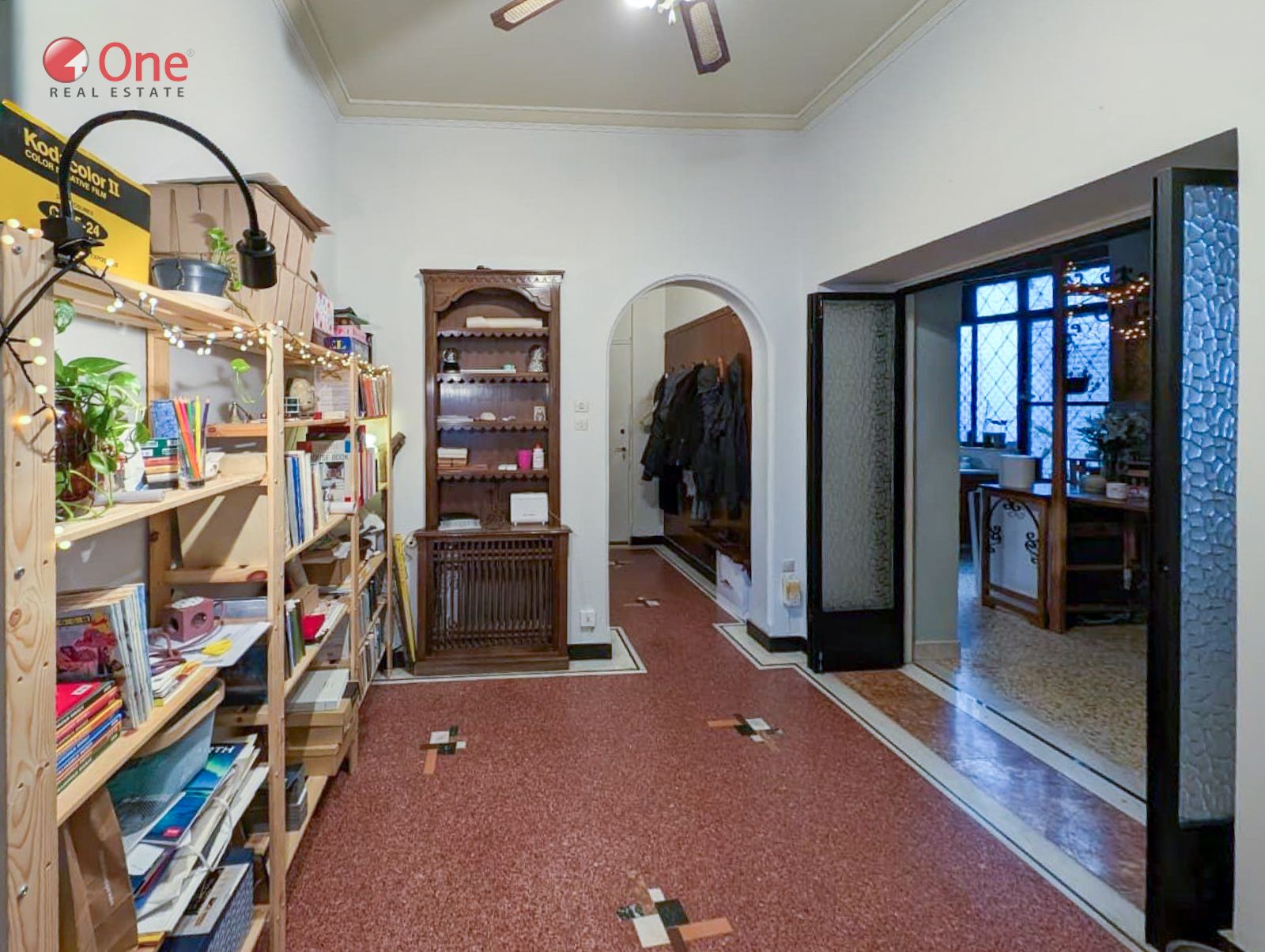 The apartment features beautifully preserved mosaic floors, enhancing its classic and timeless character.