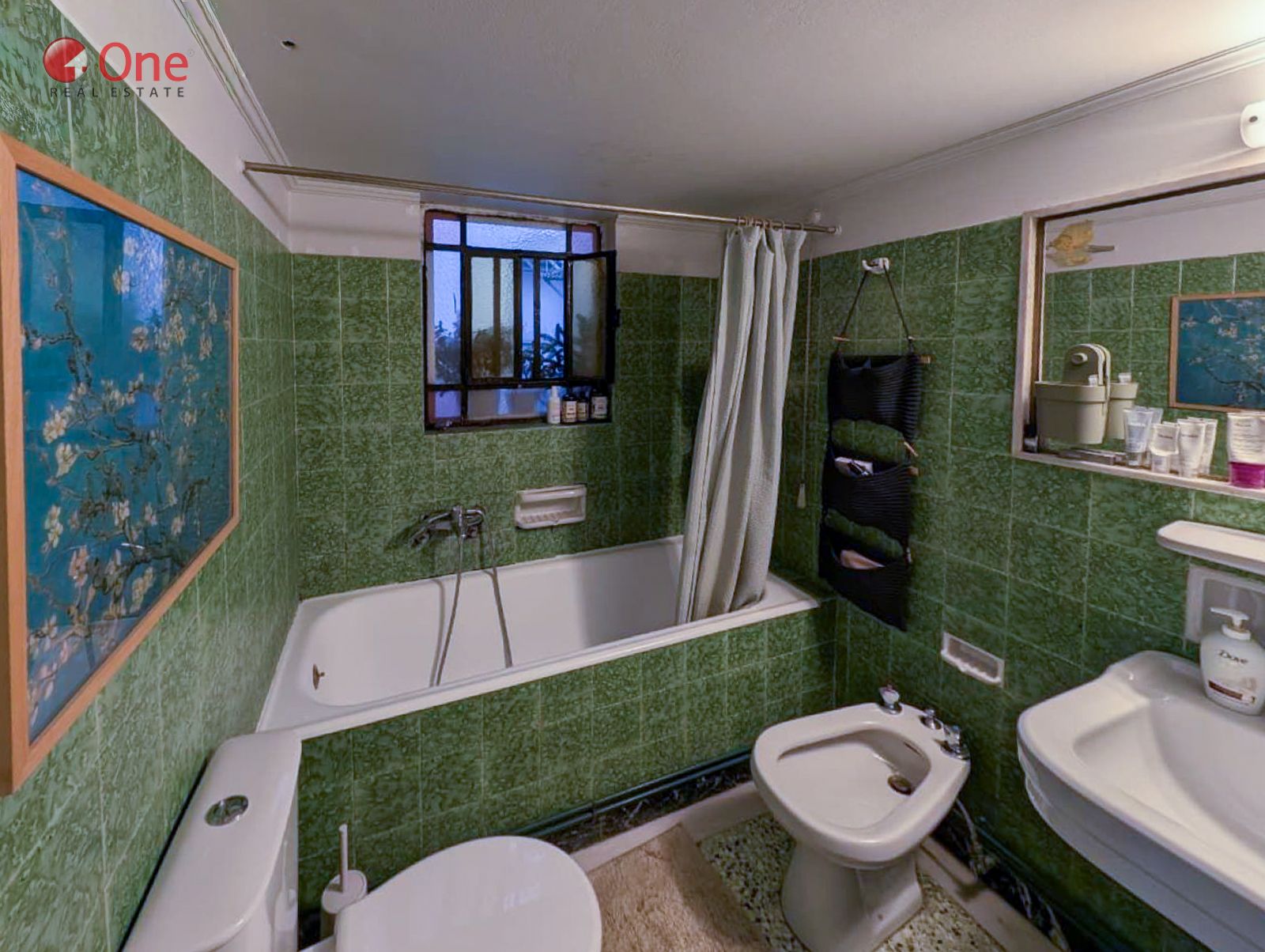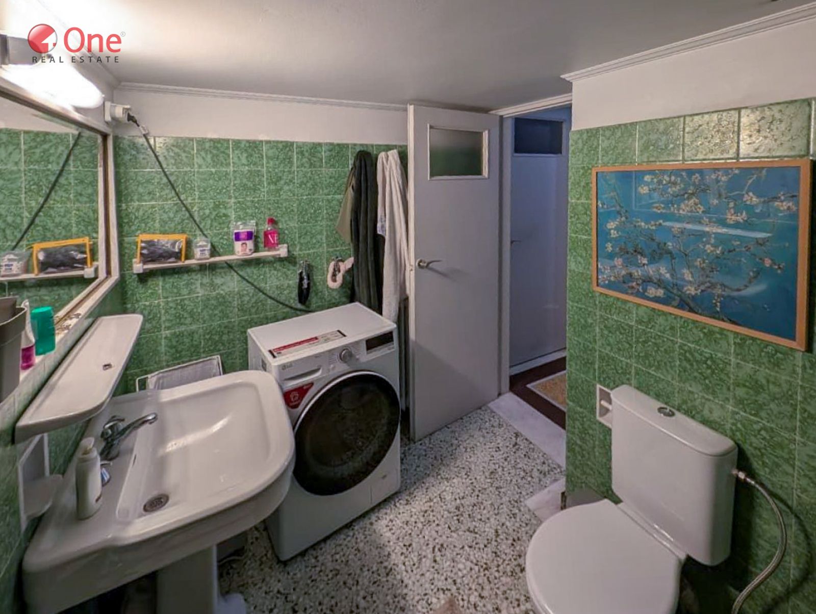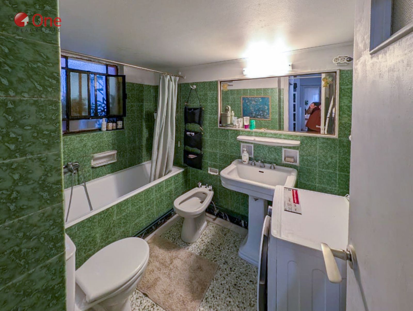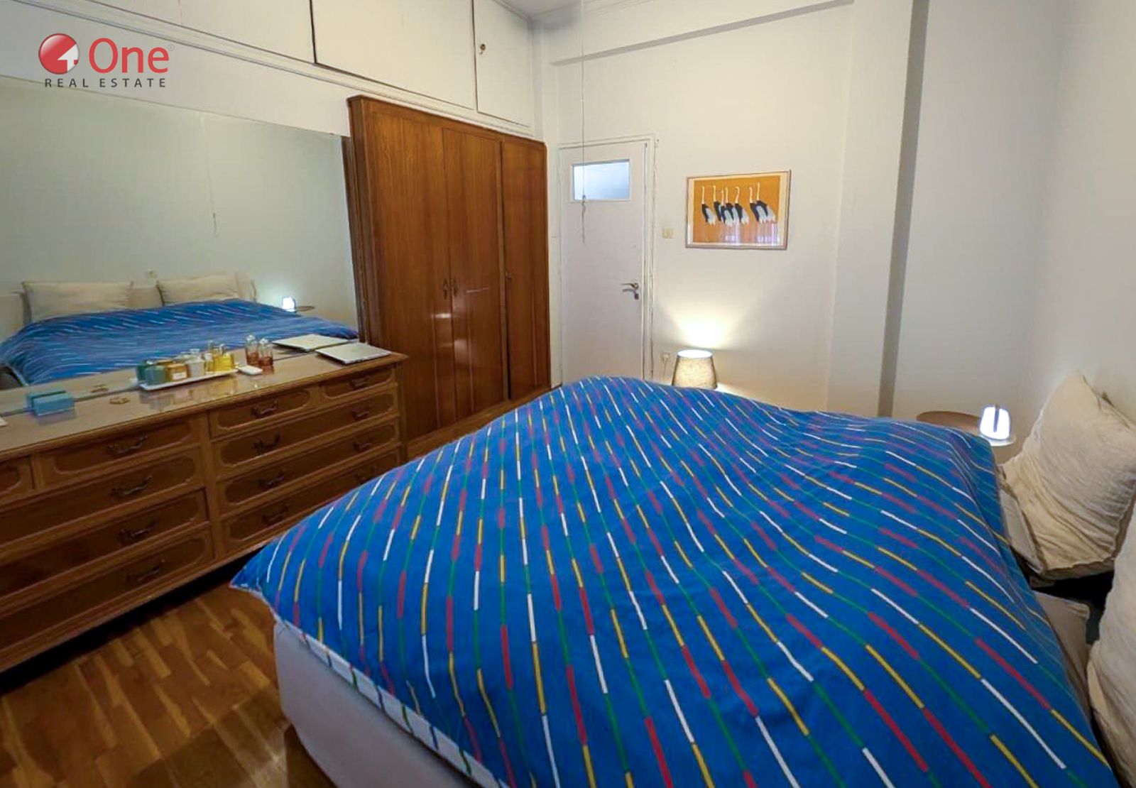 The apartment features beautifully preserved mosaic floors, enhancing its classic and timeless character.