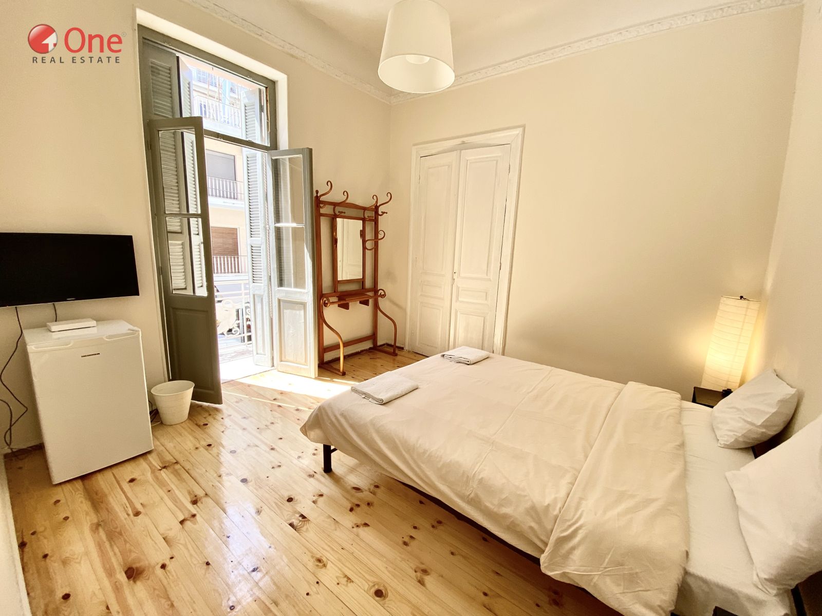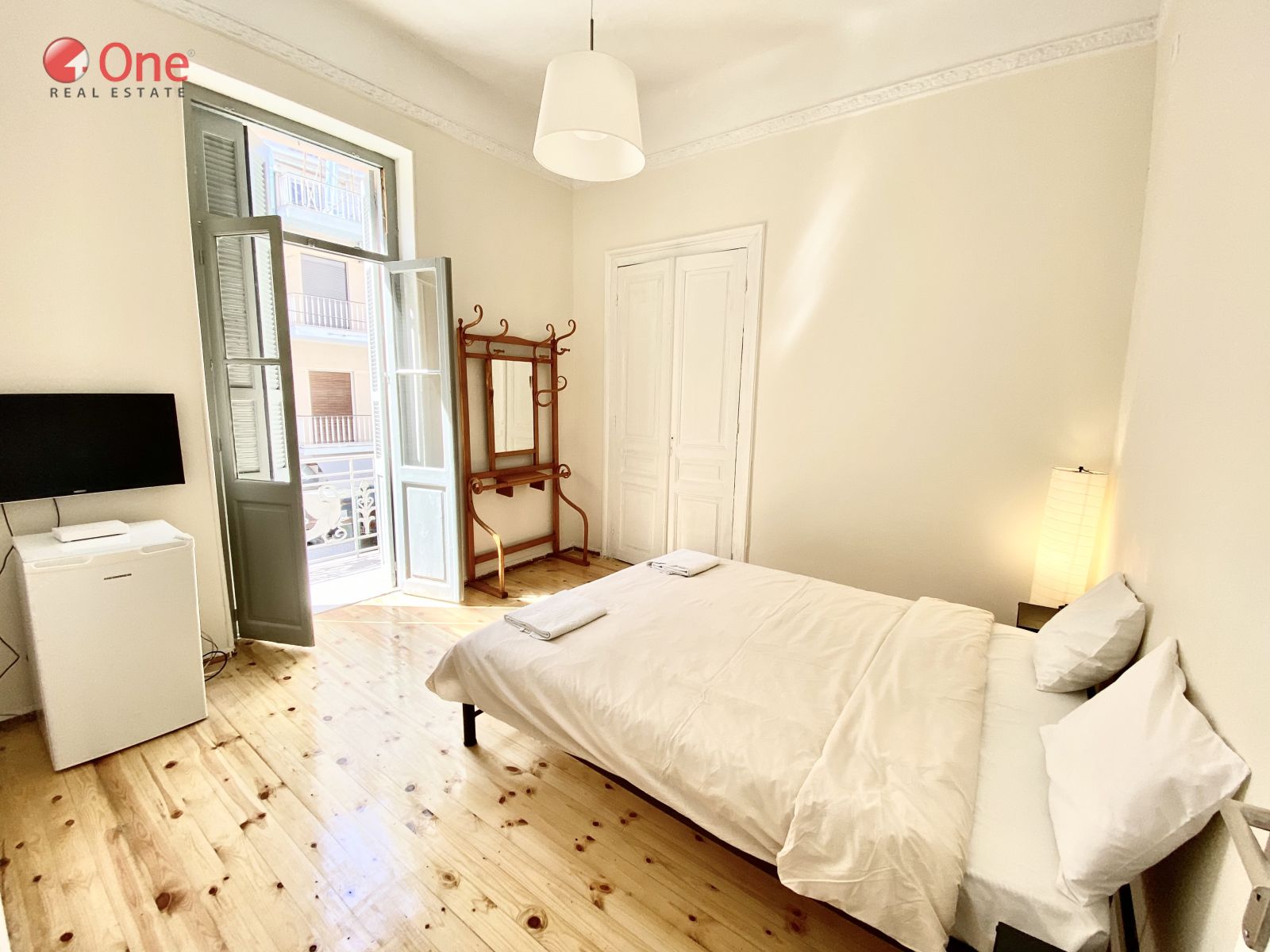 Acharnon Ave. - Pl. Victoria: Renovated first floor apartment for sale in a historic residence in Athens, 100 sq m of frontage - 1st floor windows built in 1900. One of the most classic buildings of old Athens with 3.5m high ceilings and private access to the rooftop courtyard. The apartment has a private entrance and can serve as residence but also for professional use such as office or bar/restaurant. The owner also owns 50% of it plot of land. The house is located on a plot of 130 sq.m. with 50% ownership. It consists of 3 bedrooms, 1 kitchen, 1 living room, 1 bathroom and 1 WC, has a nice view, energy class D, .. Property Code: #1532232