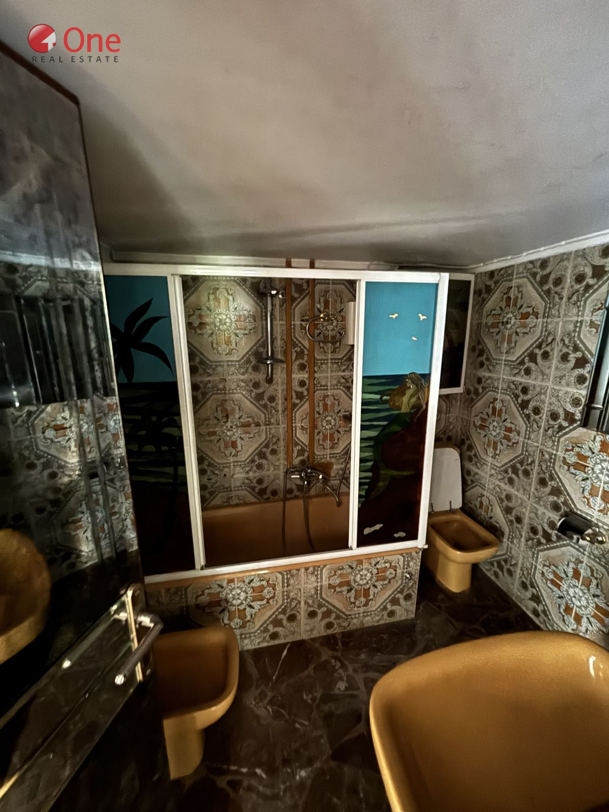The interior features a tasteful combination of ceramic tiles, mosaic, and wood flooring. Residents will enjoy the benefits of a central heating system powered by natural gas, durable aluminium joinery, and the ease of access provided by an elevator. An awning adds an extra touch of comfort.